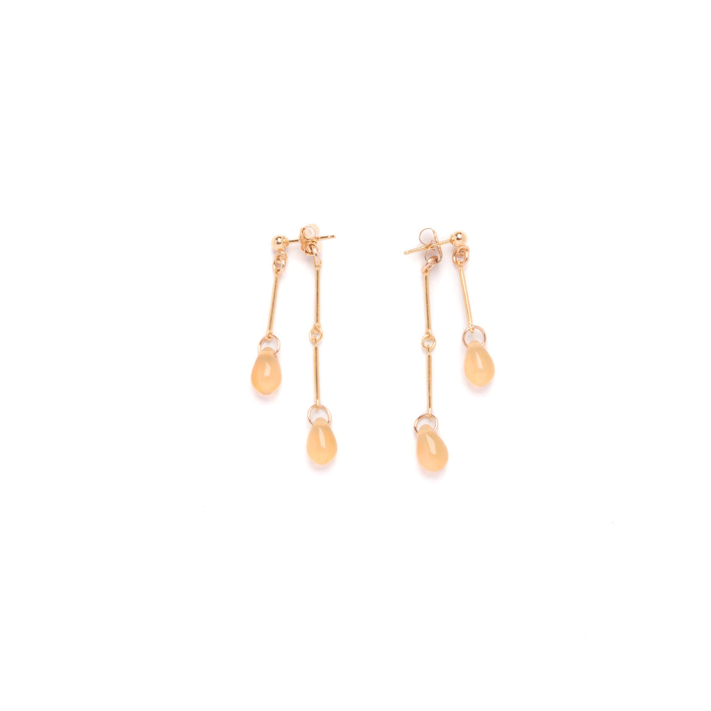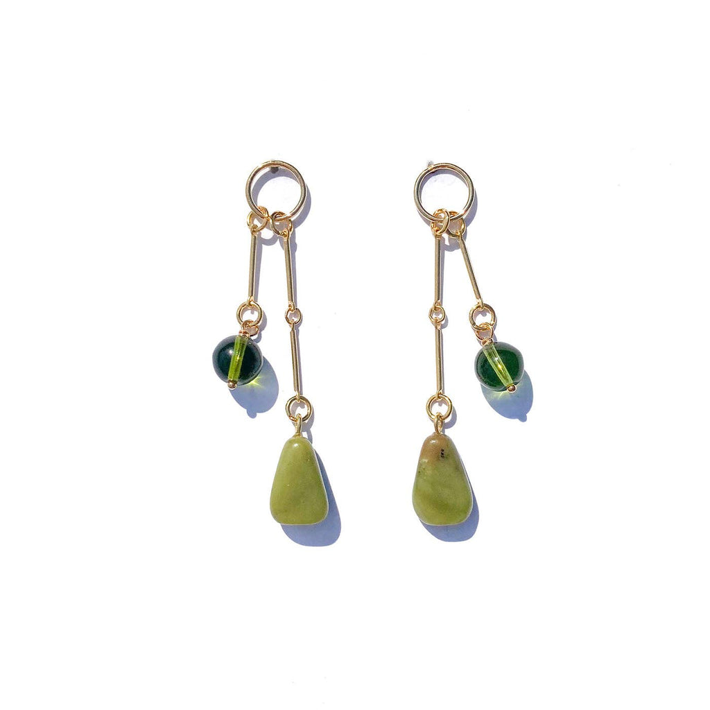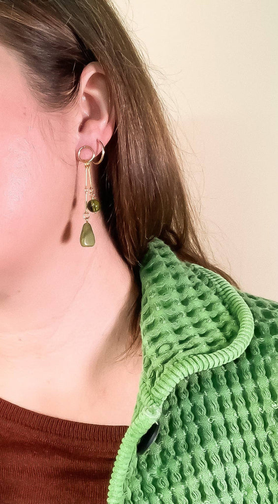 Charm Earrings in Yellow Jasper, Freshwater Pearls, and Vintage Glass