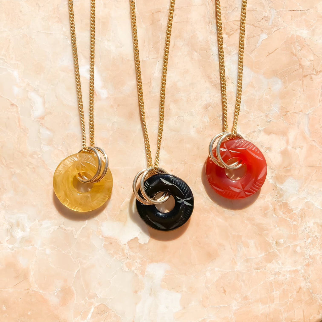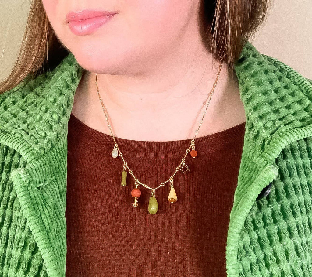 Charm Necklace in Jade, Red Jasper, Calcite, and Vintage Glass