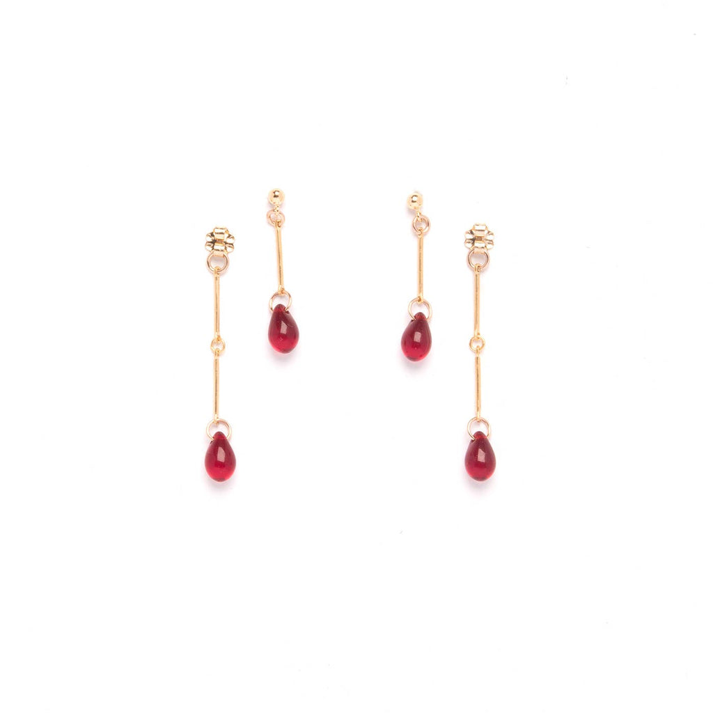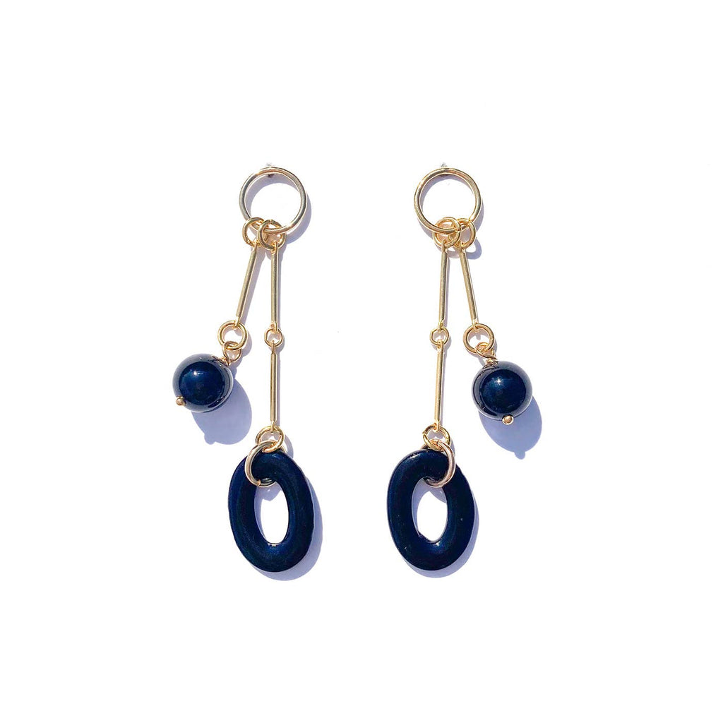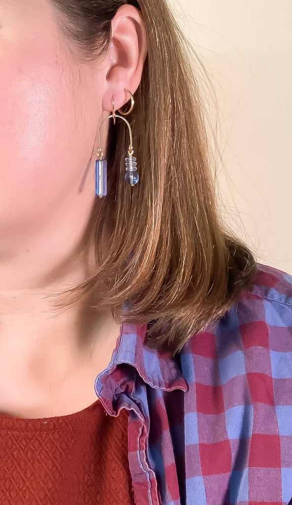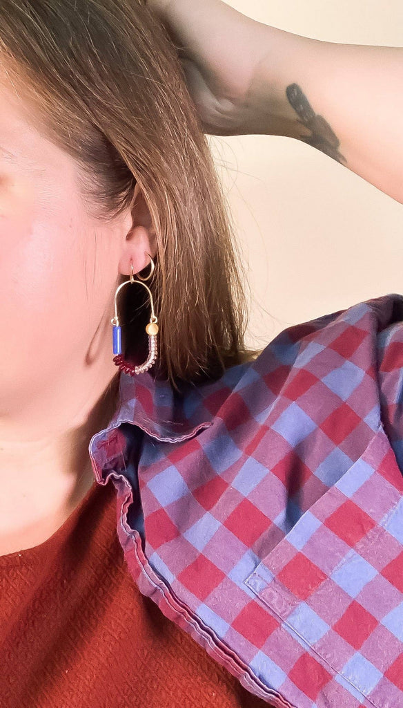 Balance Earrings in Yellow Jasper, Periwinkle + Oxblood