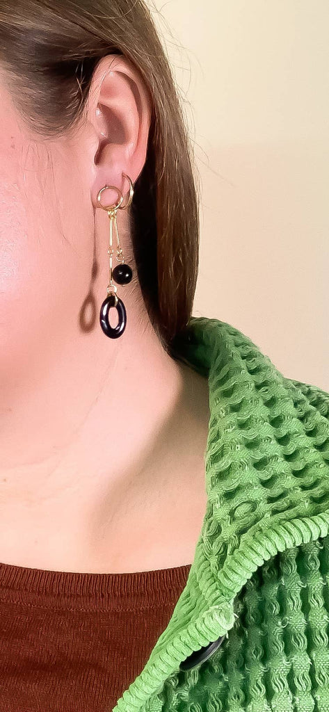 Composition Earrings in Sunstone, Pearl, Mahogany Obsidian, Glass