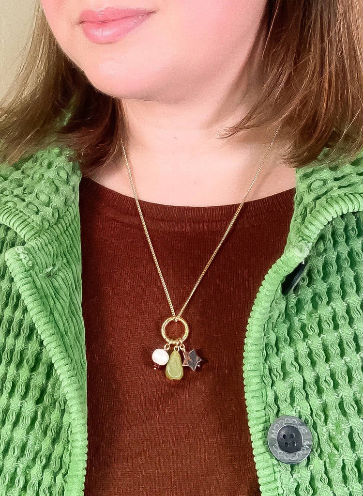 Cluster Charm Necklace in Wyoming Jade, Pearl, Mahogany Obsidian
