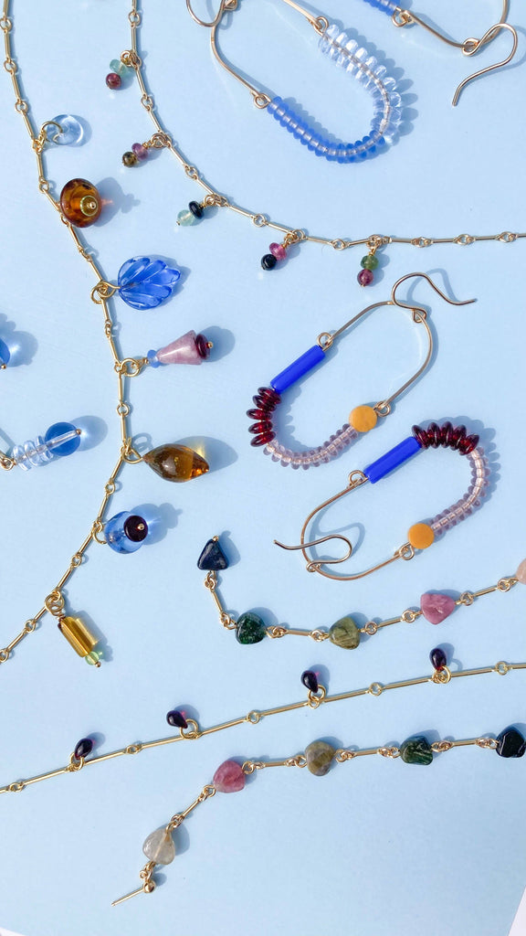 14k gold plated ball post studs and backs with Tourmaline slice beads.