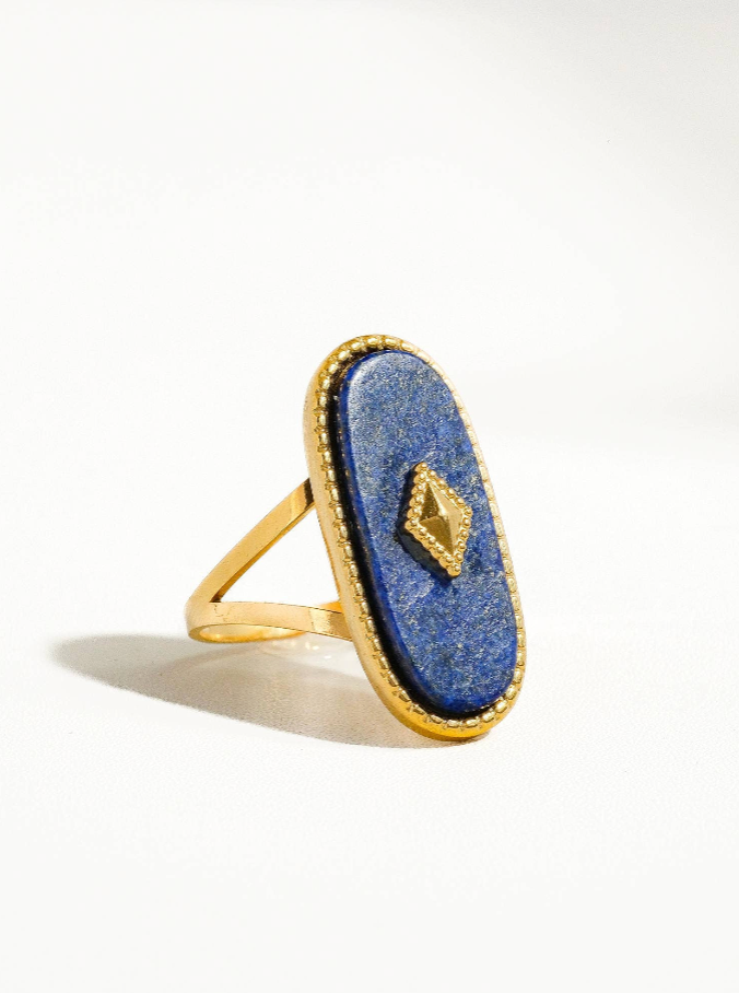 18K Non-Tarnish Gold Plated Stainless Steel Stone Adjustable Ring