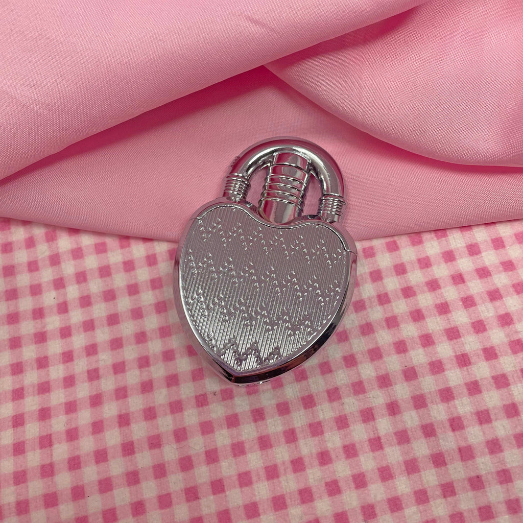 Lighter is silver and shaped like a heart shaped lock. To use the lighter, first FILL IT with butane fuel using the hole in the bottom. To light, lift the top "lock" part and press the button that was underneath the latch.